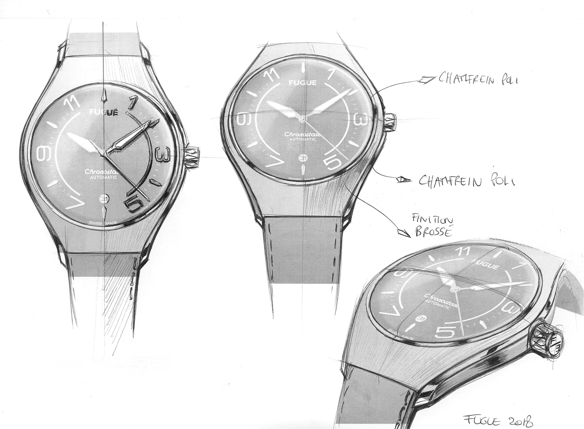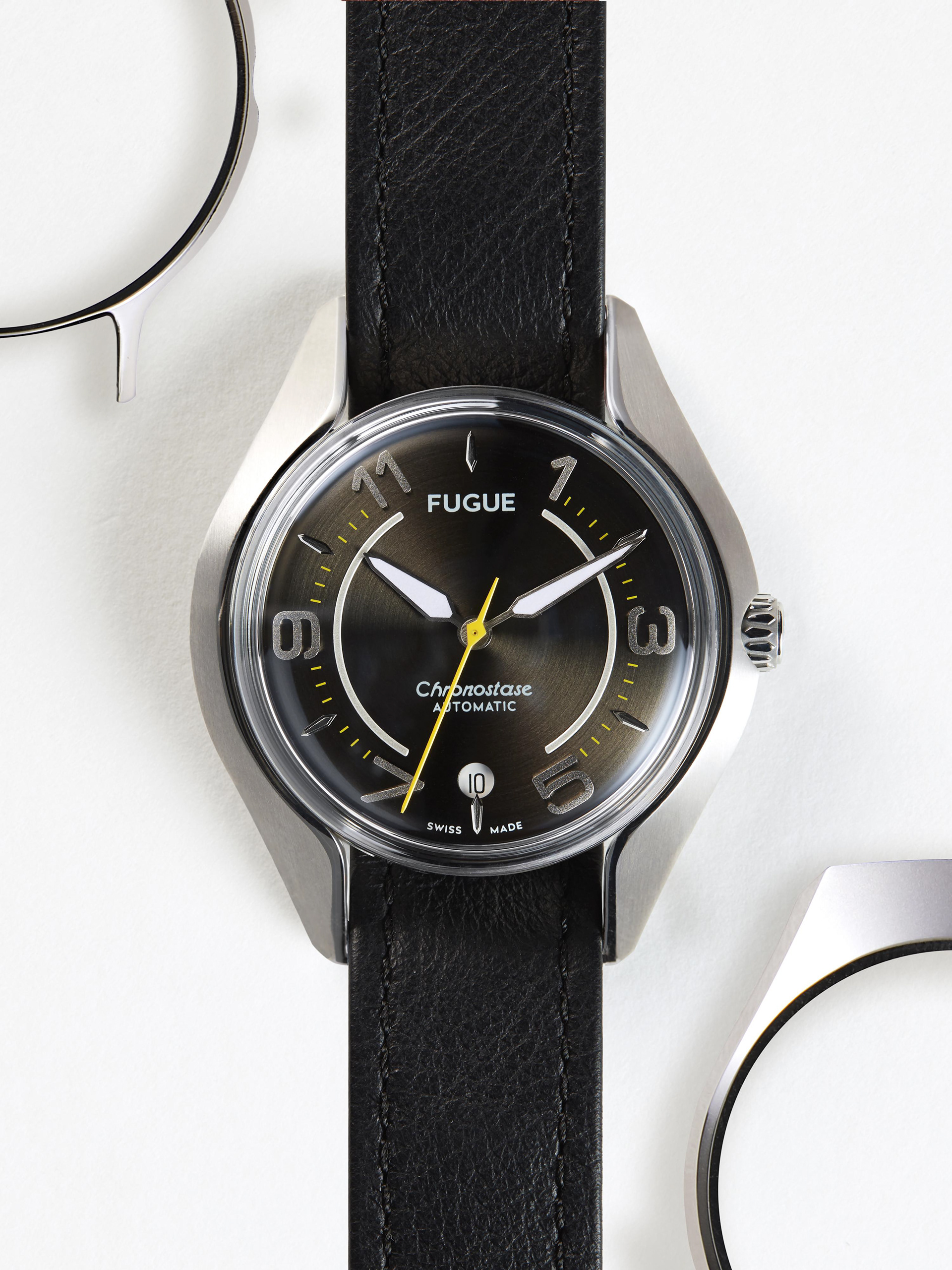 In 2018, we decided to create new frames for our modular watch Chronostase. The idea was to design to new frames, one inspired by the 1950's with a classical round shape and small lugs, the other one inspired by the 1970's monobloc, more sporty and bold.